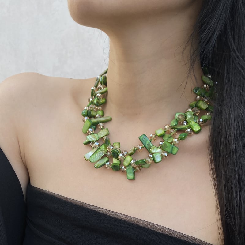 自然な美しさが魅力のvintage green faux pearl multilayer necklace – elegant and unique choker。