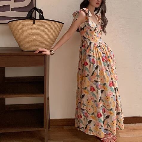 可憐なデザインが魅力のromantic resort-style oil painting dress。