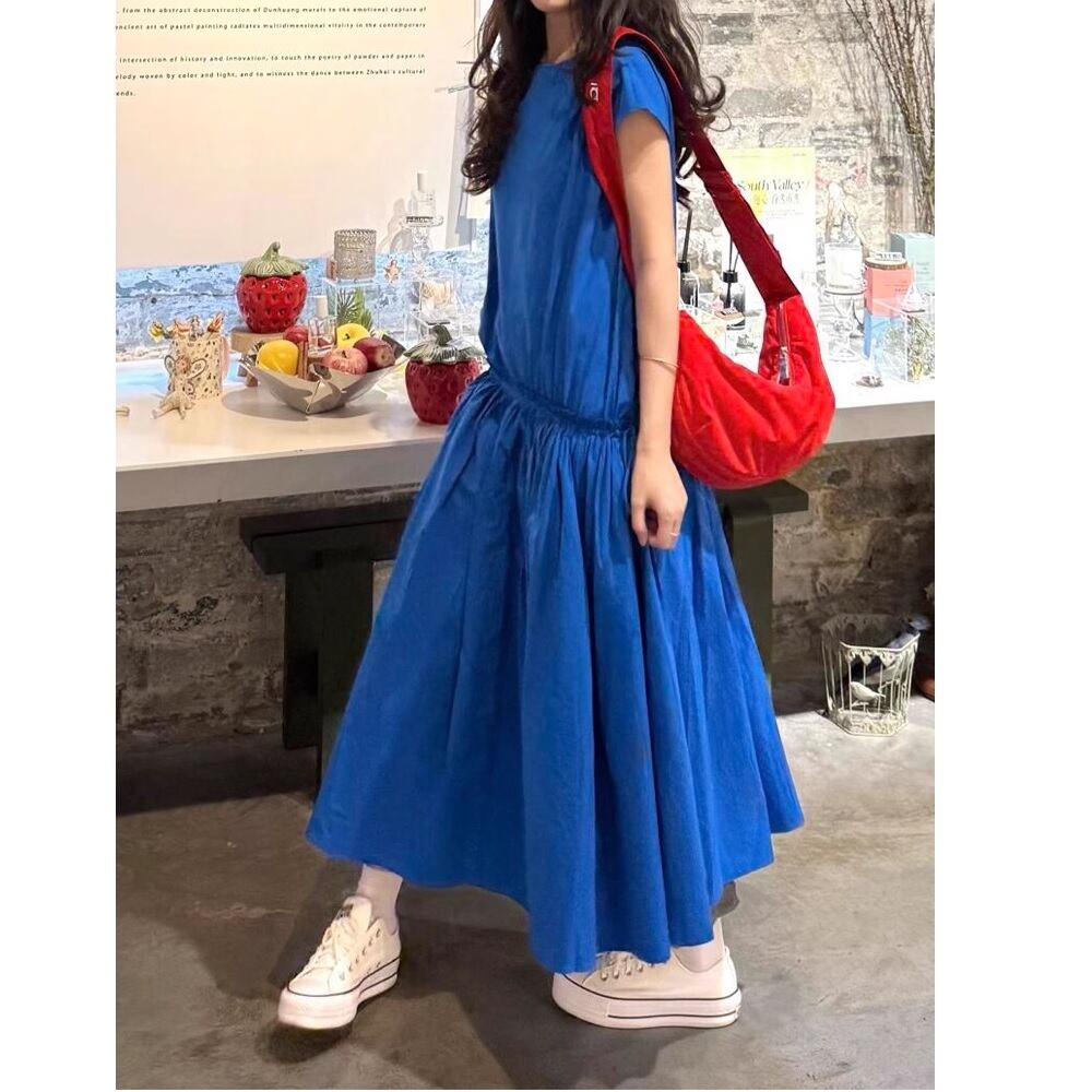 大人シンプルなklein blue drawstring one-piece。