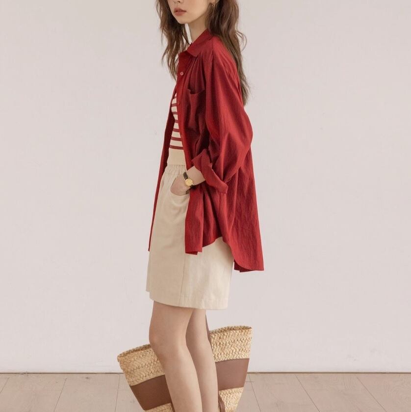 シンプルでスタイリッシュなred sun-protection shirt。 季節の変わり目にもおすすめです。 ◇商品詳細 【サイズ(cm)】 S バスト:112cm /着丈:69cm/肩幅:53cm/袖丈:55cm M バスト:116cm /着丈:71cm/肩幅:54cm/袖丈:56cm L バスト:120cm /着丈:73cm/肩幅:55cm/袖丈:57cm model info 身長168cm 着用サイズ L ※採寸方法により1-3cmの誤差がある場合がございます 【カラー】 レッド/ブラック/ホワイト 【素材】 再生セルロース繊維70 ナイロン30 折りたたんで発送されるため、折ジワがある場合があります。ご了承のほどよろしくお願いいたします。 【注意点】※誠に恐れ入りますが、必ずこちらを承諾の上でご注文ください。 ご購入の際は、こちらを承諾したものとさせて頂きます。 【お届けについて】 当ショップの商品は海外からの取り寄せ・発送となるため、ご入金から商品到着まで2週間~4週間のお届けになります。 ◼️注意事項 ・タイミングによっては 商品在庫切れにより 注文キャンセルとさせていただく恐れもございますので、予めご了承くださいませ。 ・こちらは輸入品となります。日本製とは検品基準が異なる為、 新品未使用品でもごくわずかな汚れや傷がある場合もございます。 ・商品の色味は、お手持ちのスマートフォンの画面によって実物と若干異なる場合がございます。 ・イメージ違いやサイズ交換等、お客さまご都合による交換、返品は対応出来かねます。 【お支払い方法】 以下の各種お支払い方法をお選びいただけます。 ・BASEかんたん決済 ・クレジットカード決済(VISA/Master/JCB/AMERICAN EXPRESS) ・キャリア決済 ・銀行振込 ・コンビニ決済・Pay-easy ご購入前にこちらをお読みください ———————————— 管理番号:t1623 ———————————