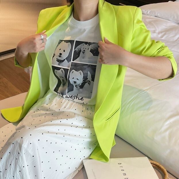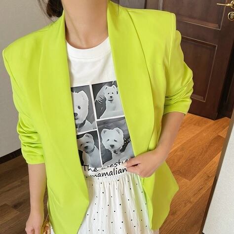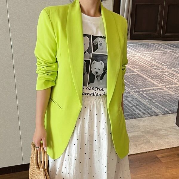 鮮やかで存在感のあるfluorescent green oversized blazer。