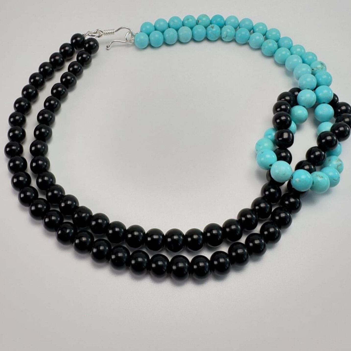 鮮やかなターコイズカラーがアクセントになったs925 sterling silver turquoise color-block necklace。