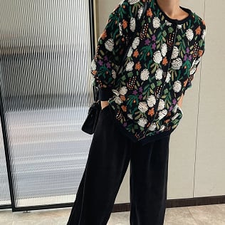花々が咲き乱れるような鮮やかなフローラルプリントが、心躍る oversized floral knit cardigan。