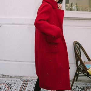 クリスタルが溶け込む、息を呑むほどのhand-sewn crystal red alpaca coat。