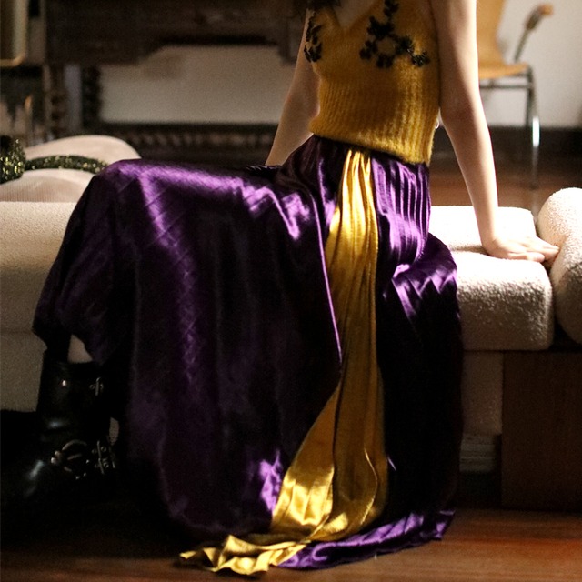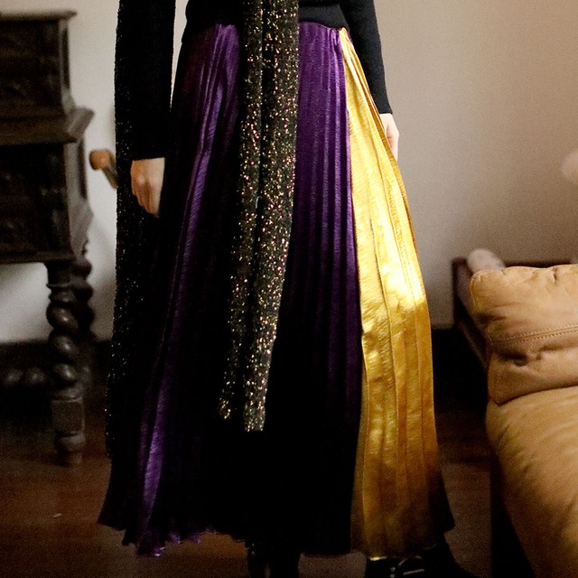 繊細なプリーツが光を受けて揺れ、歩くたびにふわりと広がるシルエット。