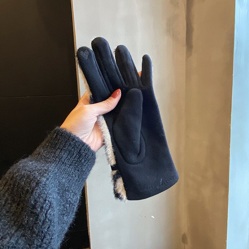 エレガントなtrendy leopard print fleece gloves。