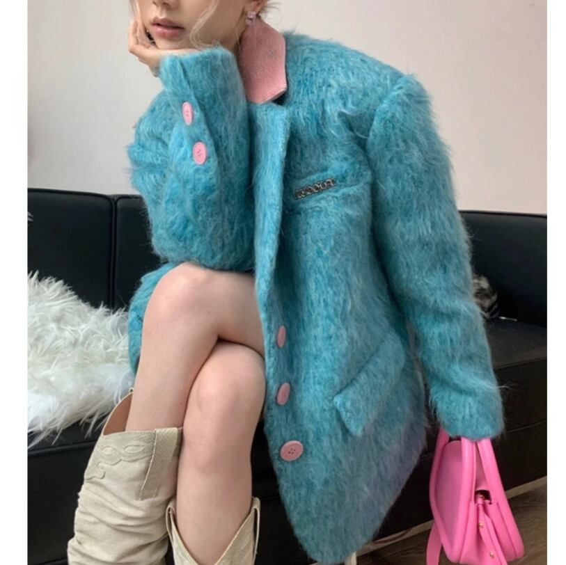 style blue casual blazer – trendy loose-fit elegant outerwear<j1476>