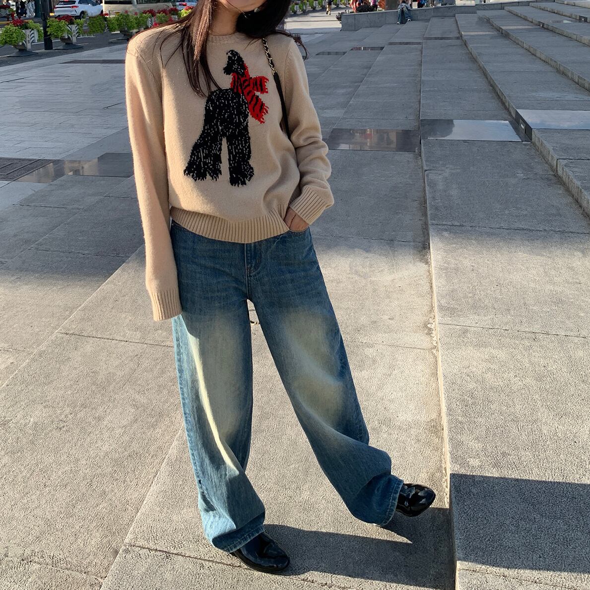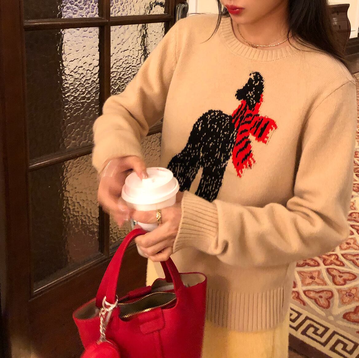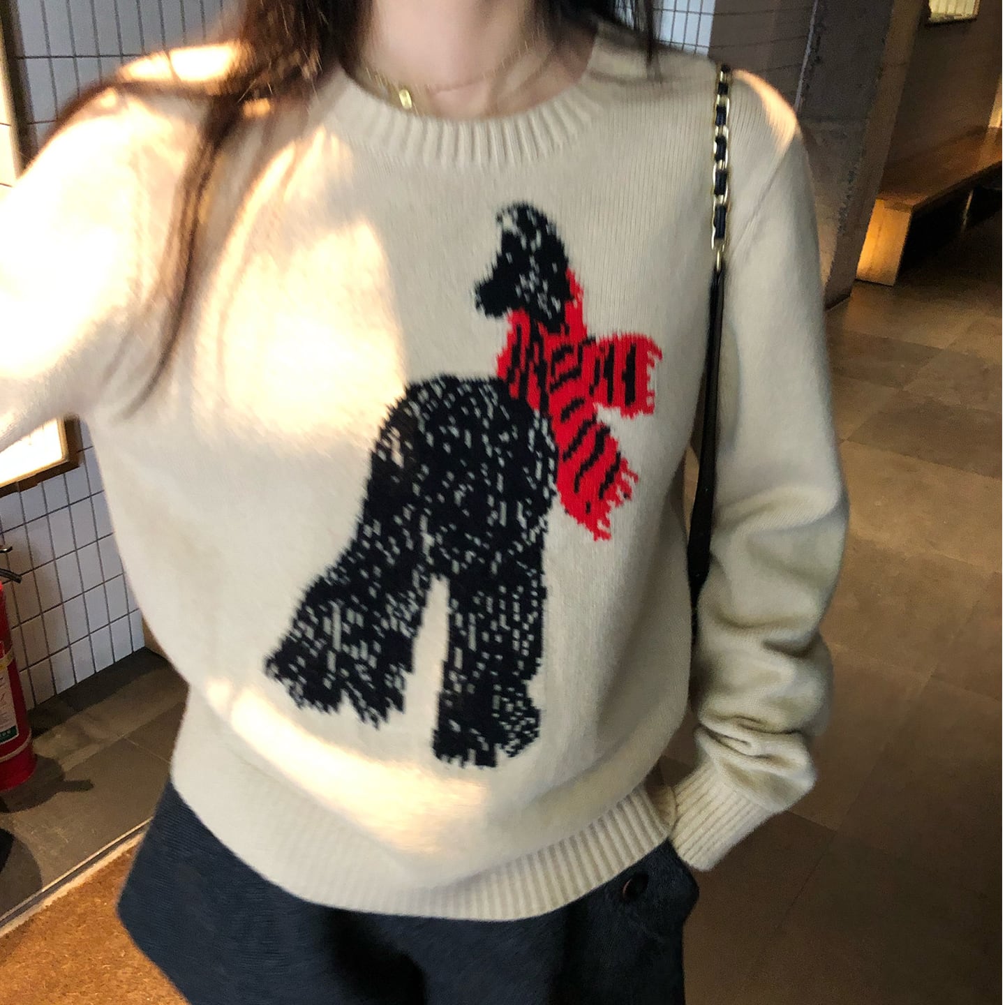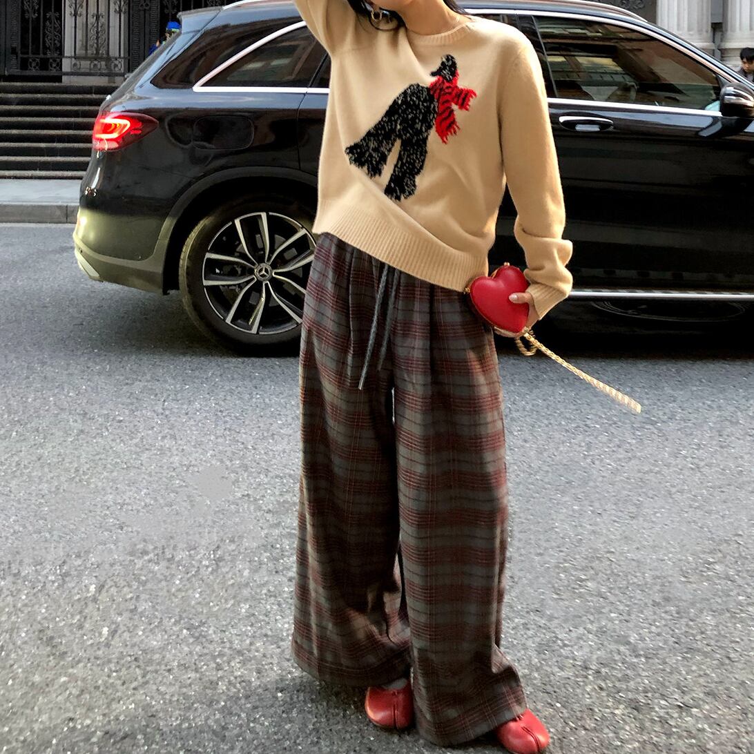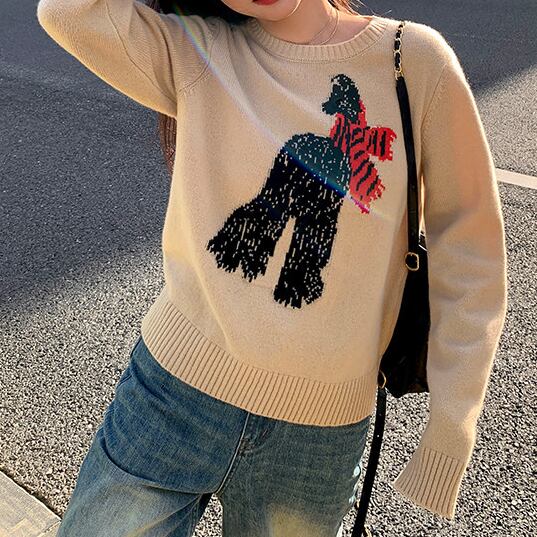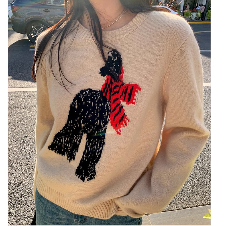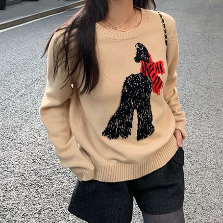 さりげない可愛らしさを纏うsubtle scarf animal embroidery sweater。