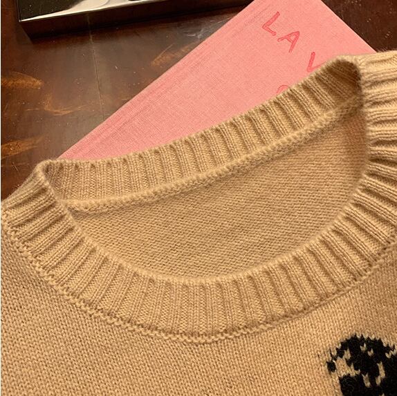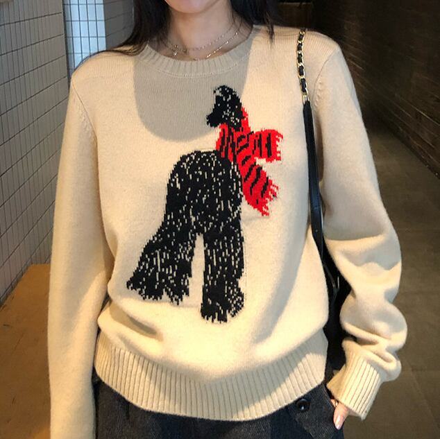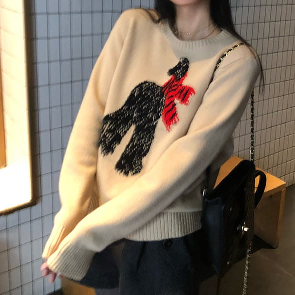 subtle scarf animal embroidery sweater<t1487>