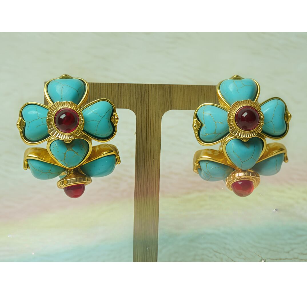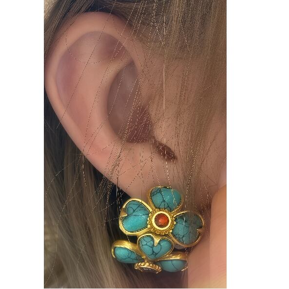 地中海の青い海と黄金の砂浜を思わせる、レトロな魅力あふれるイヤリング。