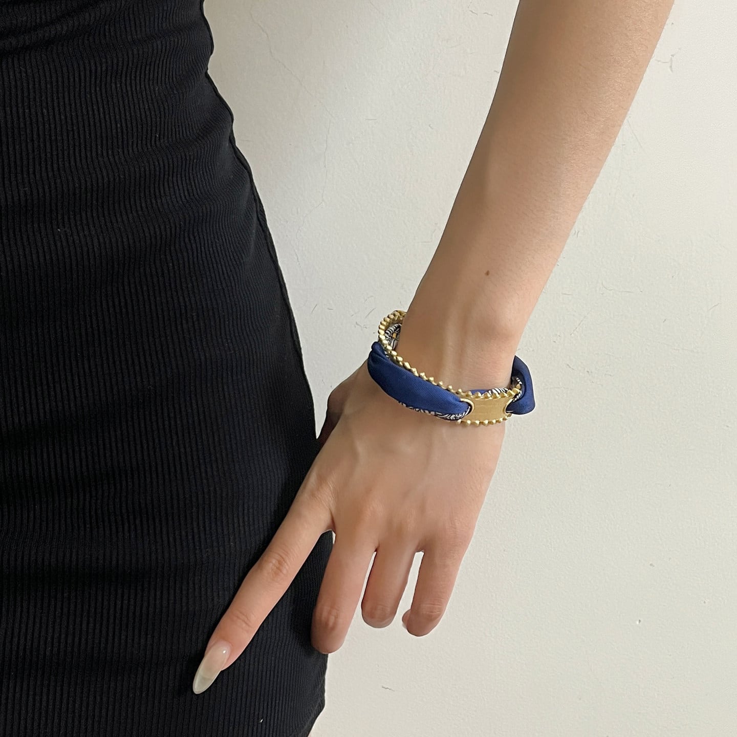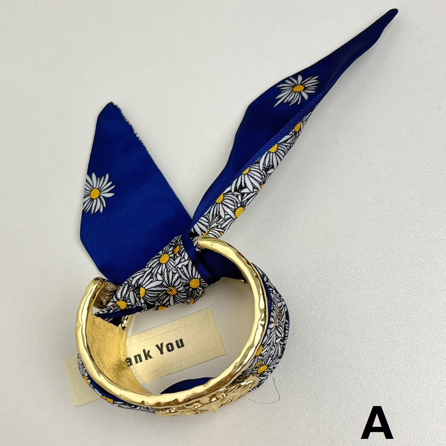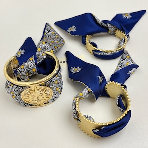 デイジーモチーフのスカーフカフブレスレットで、手元に遊び心と華やかさをプラス。