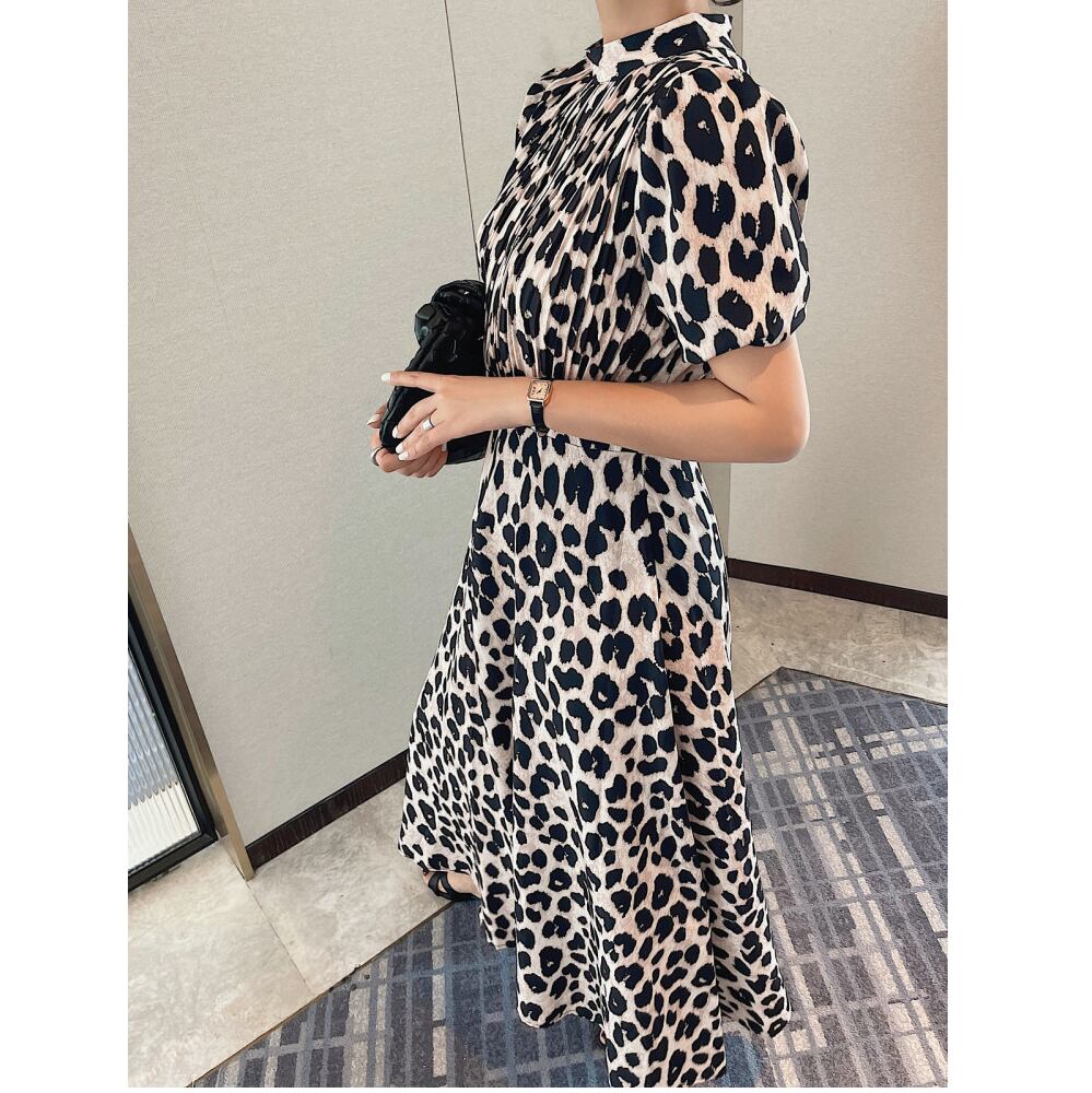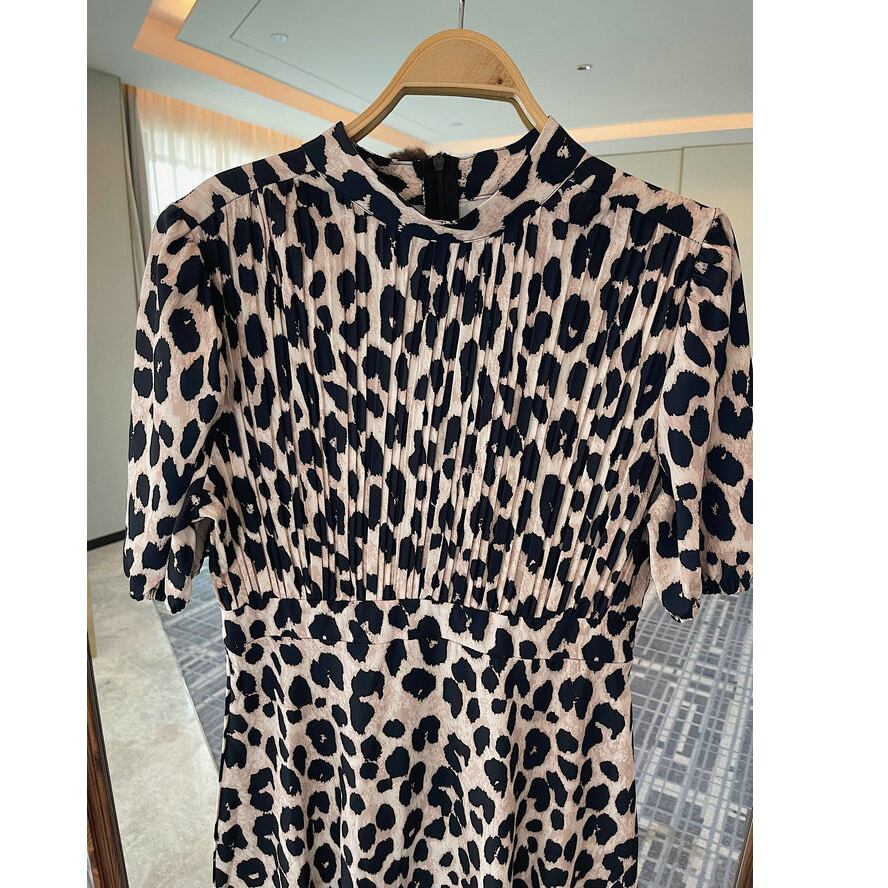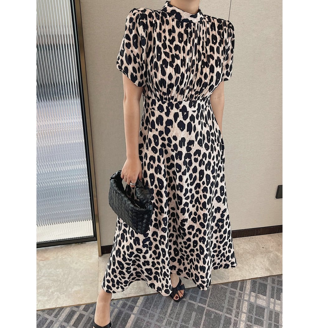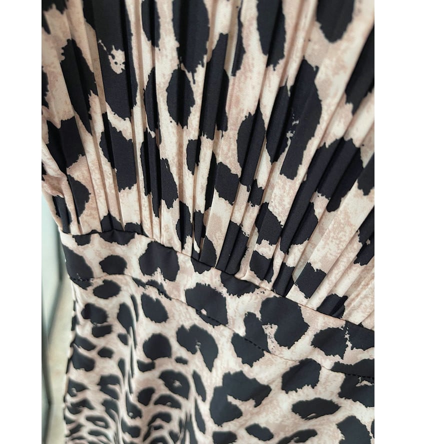 leopard pleated midi dress〈d1537〉