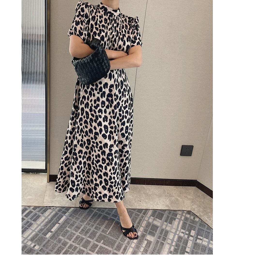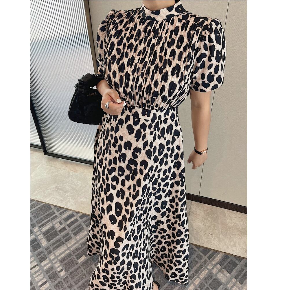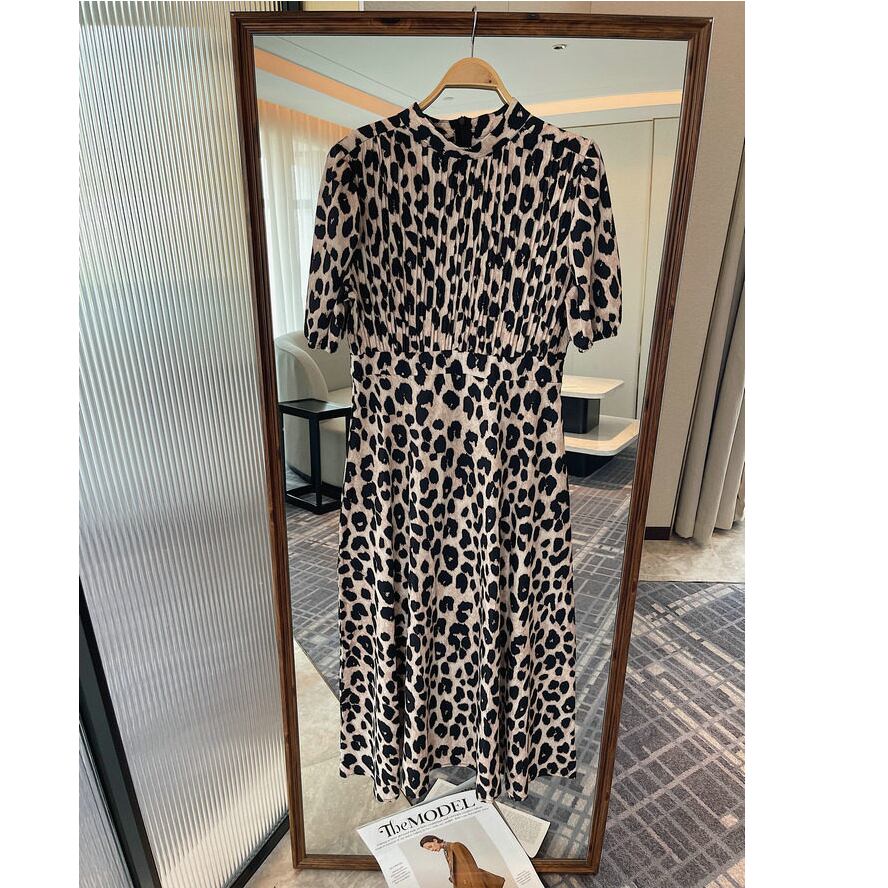 leopard pleated midi dress〈d1537〉