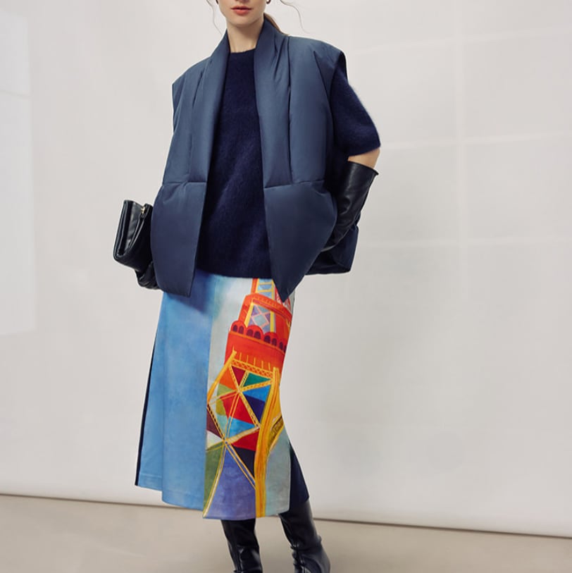 華やかなタワープリントが目を惹くミディスカート。