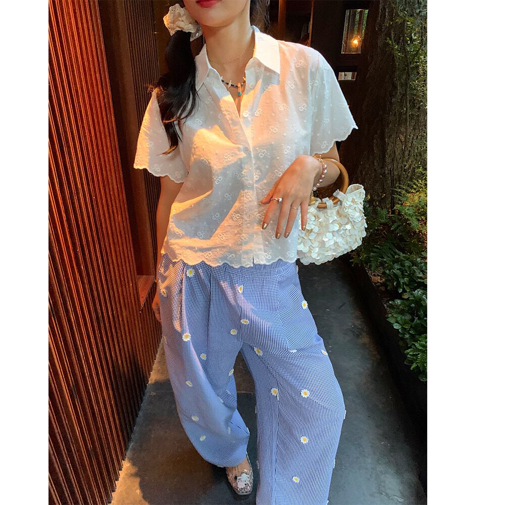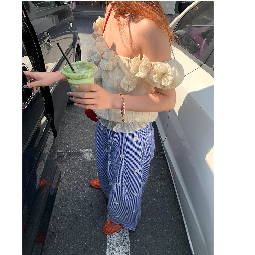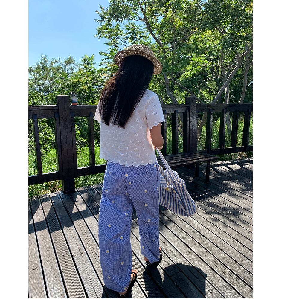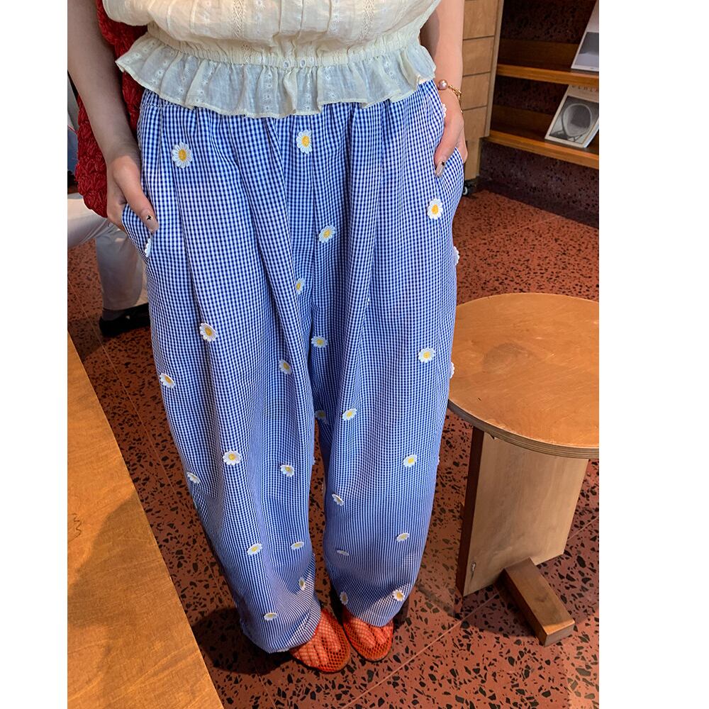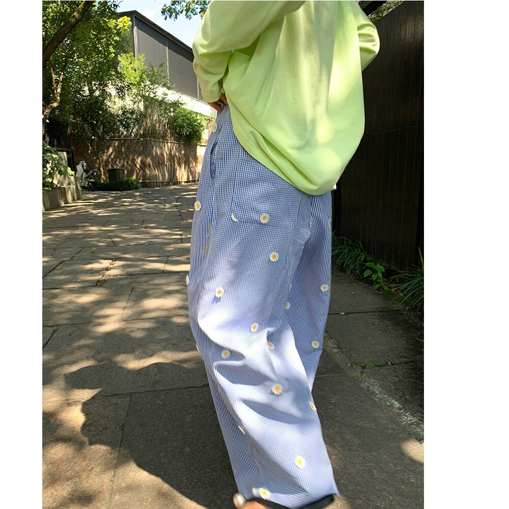 可憐なdaisyが散りばめられた、爽やかな印象のワイドパンツ。