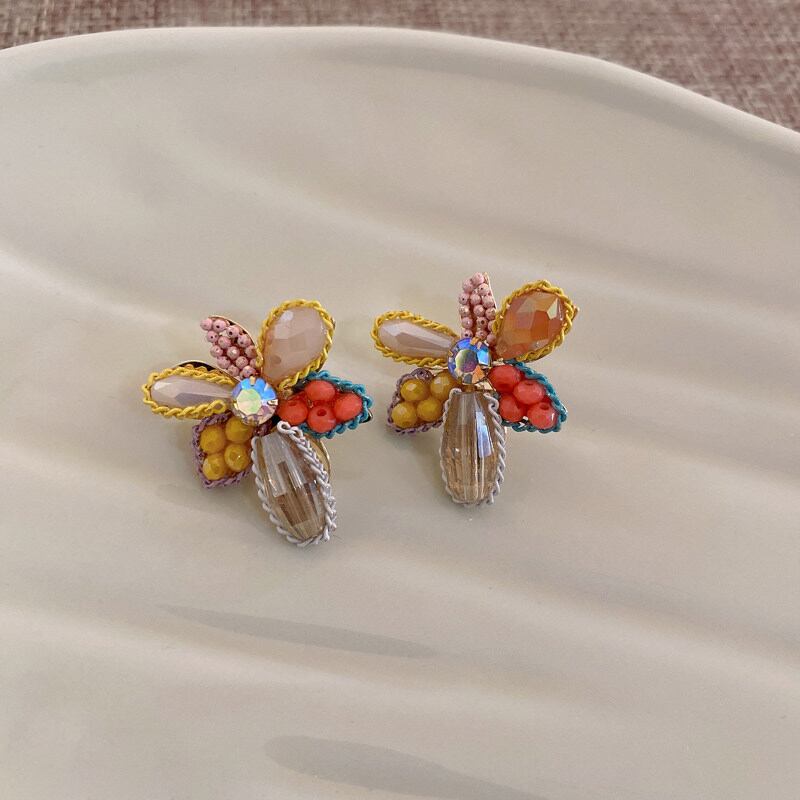 colorful crystal flower stud pierce<a1542>