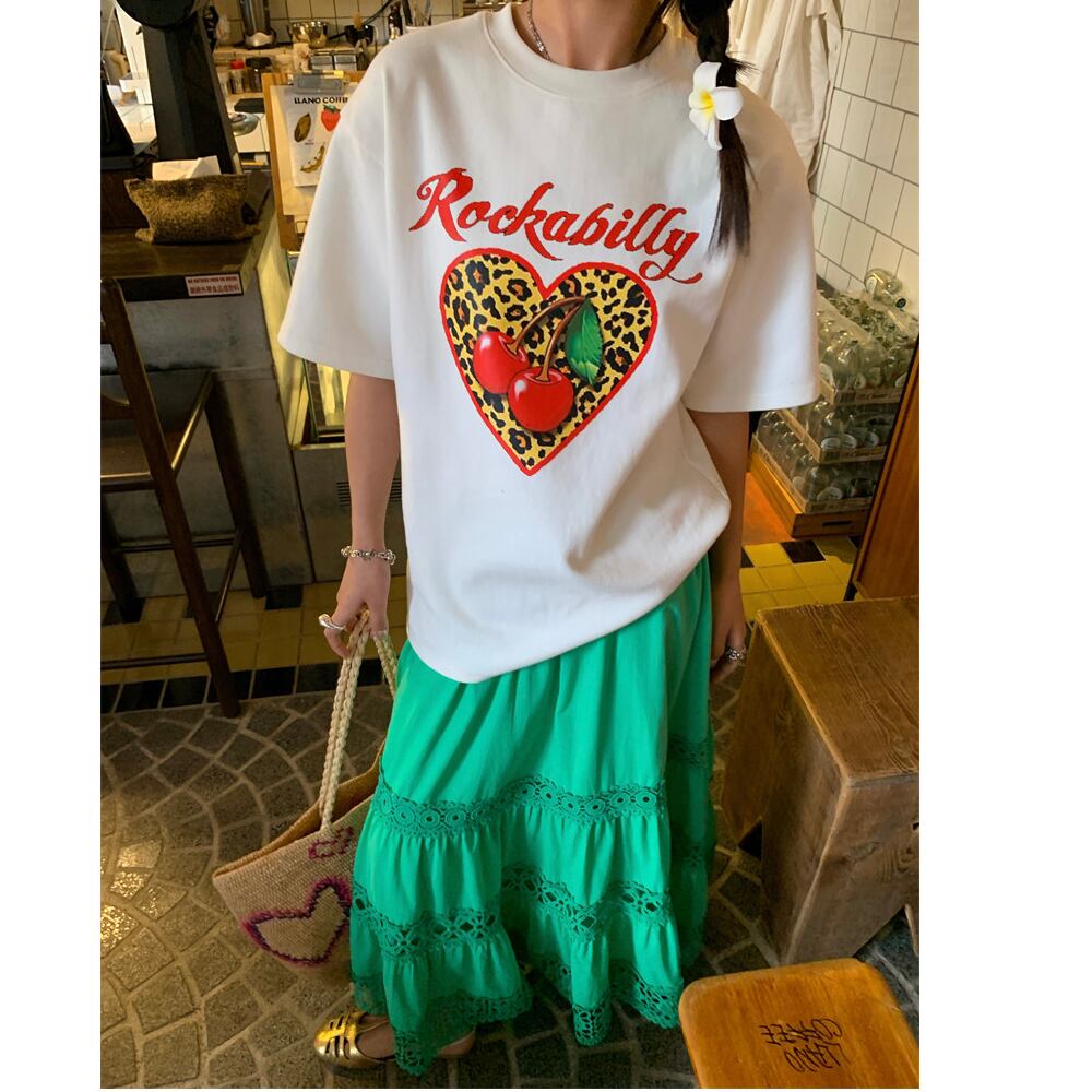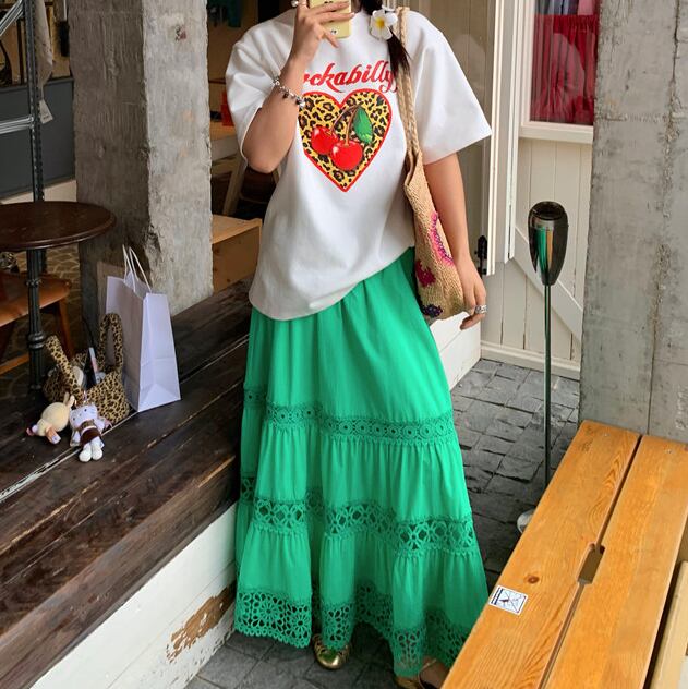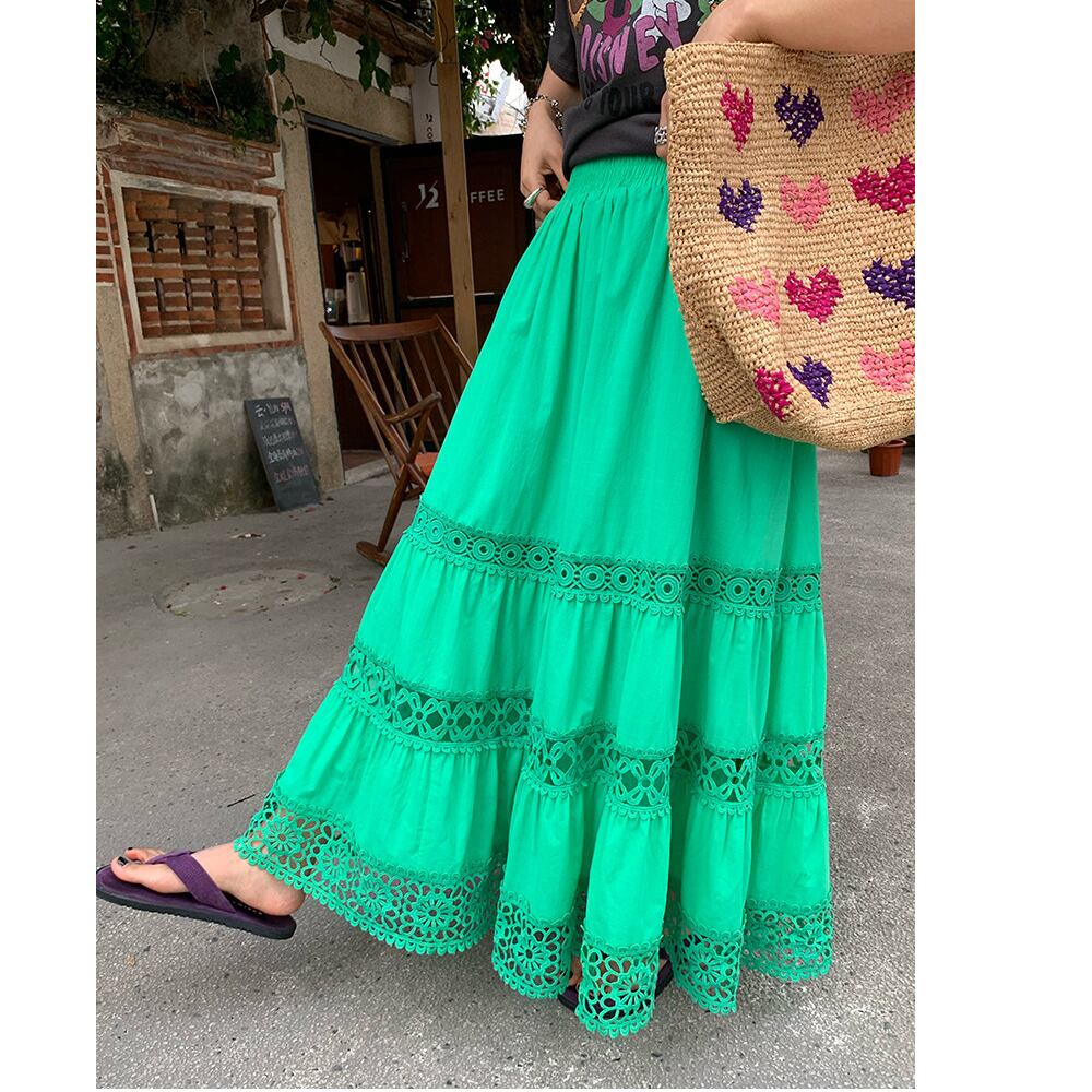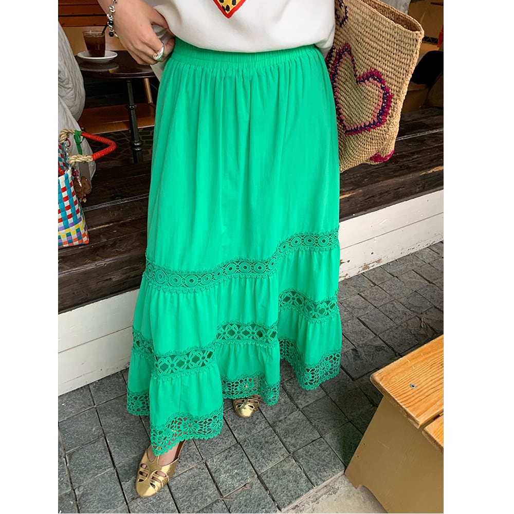 green cutout a-line midi skirt〈sk1555〉