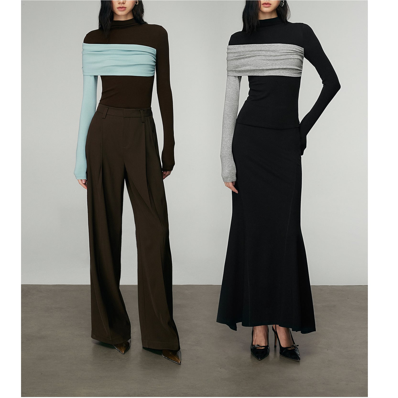 コントラストカラーが際立つ、モード感あふれるハイネックトップス。 洗練された配色とすっきりとしたシルエットで、スタイリッシュさを演出。 ◇商品詳細 【サイズ(cm)】 S 着丈:53cm 肩幅:33.5cm バスト:64cm~ ウエスト:58cm~ 裾周り:66cm 袖丈:61cm M 着丈:54cm 肩幅:34.5cm バスト:68cm~ ウエスト:62cm~ 裾周り:70cm 袖丈:62cm L 着丈:55cm 肩幅:35.5cm バスト:72cm~ ウエスト:66cm~ 裾周り:74cm 袖丈:63cm ※バスト・ウエスト伸縮性あり ※採寸方法により1-3cmの誤差がある場合がございます 【カラー】 ブラック×グレー/ブラウン×ブルー 【素材】 レーヨン38.3% ポリエステル29.2% コットン27.1% ナイロン5.4% 折りたたんで発送されるため、折ジワがある場合があります。ご了承のほどよろしくお願いいたします。 【注意点】※誠に恐れ入りますが、必ずこちらを承諾の上でご注文ください。 ご購入の際は、こちらを承諾したものとさせて頂きます。 【お届けについて】 当ショップの商品は海外からの取り寄せ・発送となるため、ご入金から商品到着まで2週間~4週間のお届けになります。 ◼️注意事項 ・タイミングによっては 商品在庫切れにより 注文キャンセルとさせていただく恐れもございますので、予めご了承くださいませ。 ・こちらは輸入品となります。日本製とは検品基準が異なる為、 新品未使用品でもごくわずかな汚れや傷がある場合もございます。 ・商品の色味は、お手持ちのスマートフォンの画面によって実物と若干異なる場合がございます。 ・イメージ違いやサイズ交換等、お客さまご都合による交換、返品は対応出来かねます。 【お支払い方法】 以下の各種お支払い方法をお選びいただけます。 ・BASEかんたん決済 ・クレジットカード決済(VISA/Master/JCB/AMERICAN EXPRESS) ・キャリア決済 ・銀行振込 ・コンビニ決済・Pay-easy 他のワンピースはこちら→https://fashion.pluscolor.shop/categories/4859868 トップページはこちら→https://fashion.pluscolor.shop/ ———————————— 管理番号:t1572 ———————————