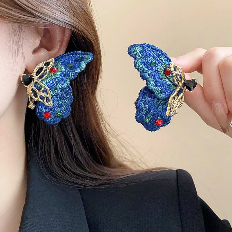 繊細な刺繍で仕立てたバタフライモチーフが印象的なピアス。