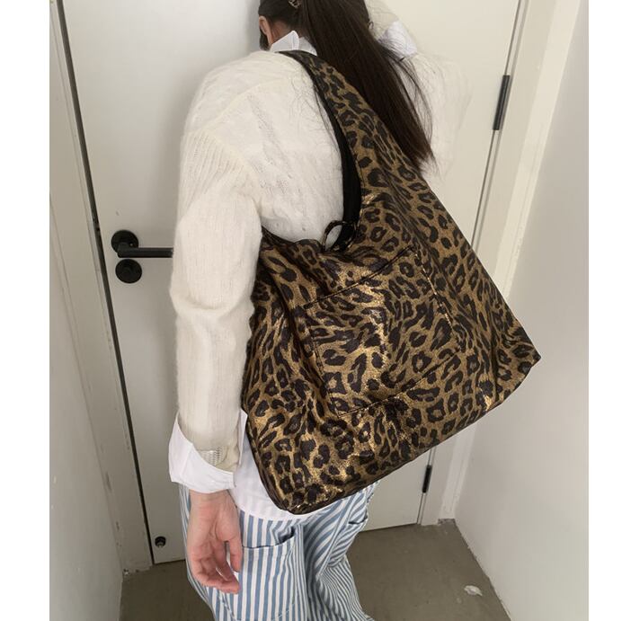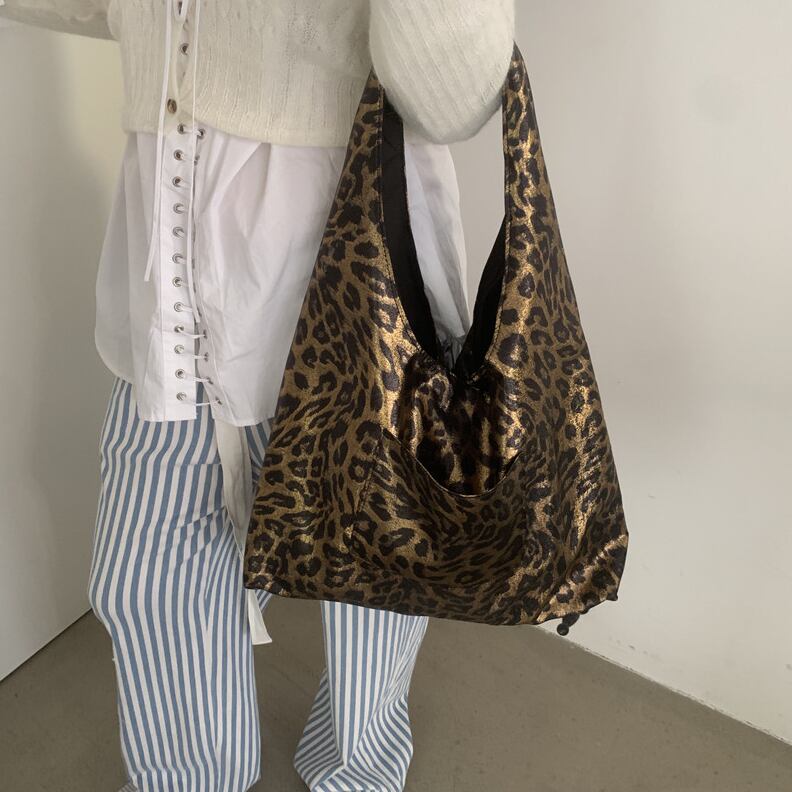 leopard print fabric shoulder bag(2color)<b1576>