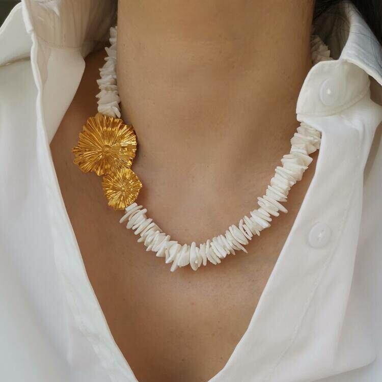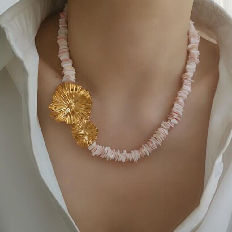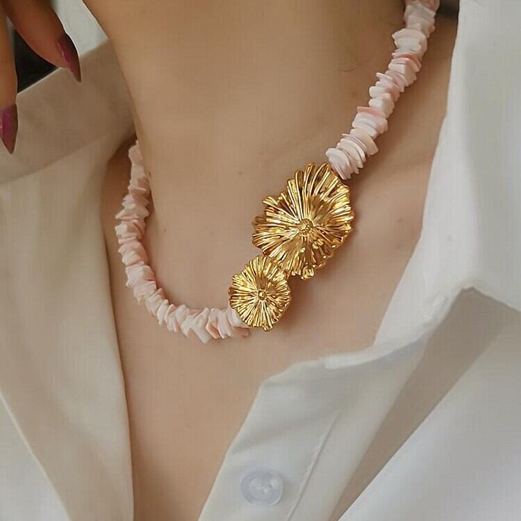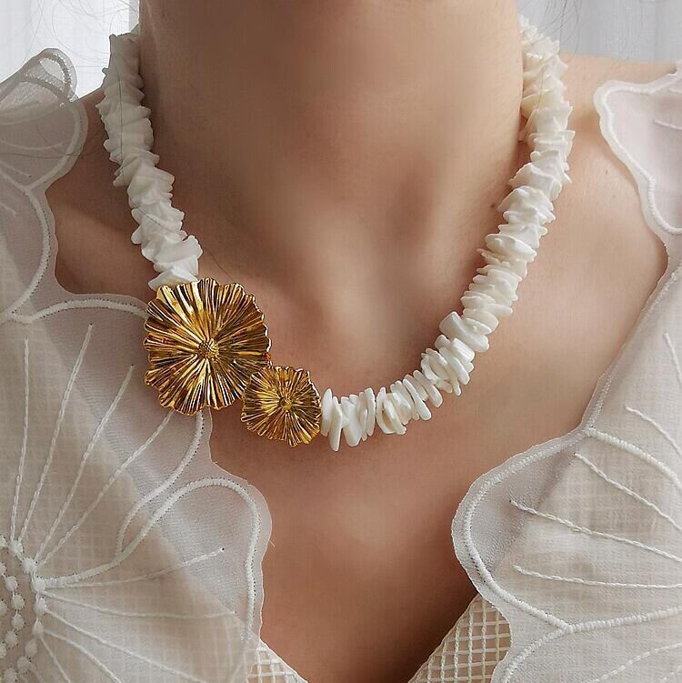ナチュラルシェルで表現したデイジーモチーフが可憐なネックレス。