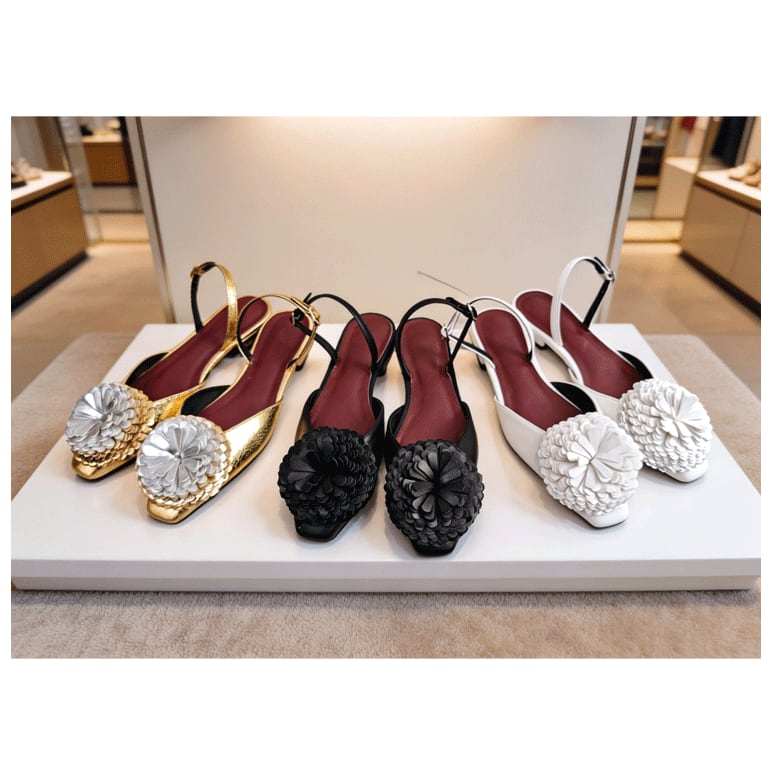 足元に咲くカメリアモチーフが印象的な、メリージェーンミュール。 やわらかな輝きと女性らしいフォルムが、上品でロマンティックな雰囲気を演出します。 さっと履くだけでコーデに華やぎを添えてくれる、特別感のある一足です。 ◇商品詳細 【サイズ(cm)】 35インチ(22.5cm) 36インチ(23cm) 37インチ(23.5cm) 38インチ(24cm) 39インチ(24.5cm) 40インチ(25cm) ※採寸方法により1-3cmの誤差がある場合がございます 【カラー】 ブラック/ゴールド/ホワイト 【素材】 インソール:マイクロファイバーレザー 内側:PU 【注意点】※誠に恐れ入りますが、必ずこちらを承諾の上でご注文ください。 ご購入の際は、こちらを承諾したものとさせて頂きます。 【お届けについて】 当ショップの商品は海外からの取り寄せ・発送となるため、ご入金から商品到着まで2週間~4週間のお届けになります。 ◼️注意事項 ・タイミングによっては 商品在庫切れにより 注文キャンセルとさせていただく恐れもございますので、予めご了承くださいませ。 ・こちらは輸入品となります。日本製とは検品基準が異なる為、 新品未使用品でもごくわずかな汚れや傷がある場合もございます。 ・商品の色味は、お手持ちのスマートフォンの画面によって実物と若干異なる場合がございます。 ・イメージ違いやサイズ交換等、お客さまご都合による交換、返品は対応出来かねます。 【お支払い方法】 以下の各種お支払い方法をお選びいただけます。 ・BASEかんたん決済 ・クレジットカード決済(VISA/Master/JCB/AMERICAN EXPRESS) ・キャリア決済 ・銀行振込 ・コンビニ決済・Pay-easy ご購入前にこちらをお読みください ———————————— 管理番号:s1583 ———————————