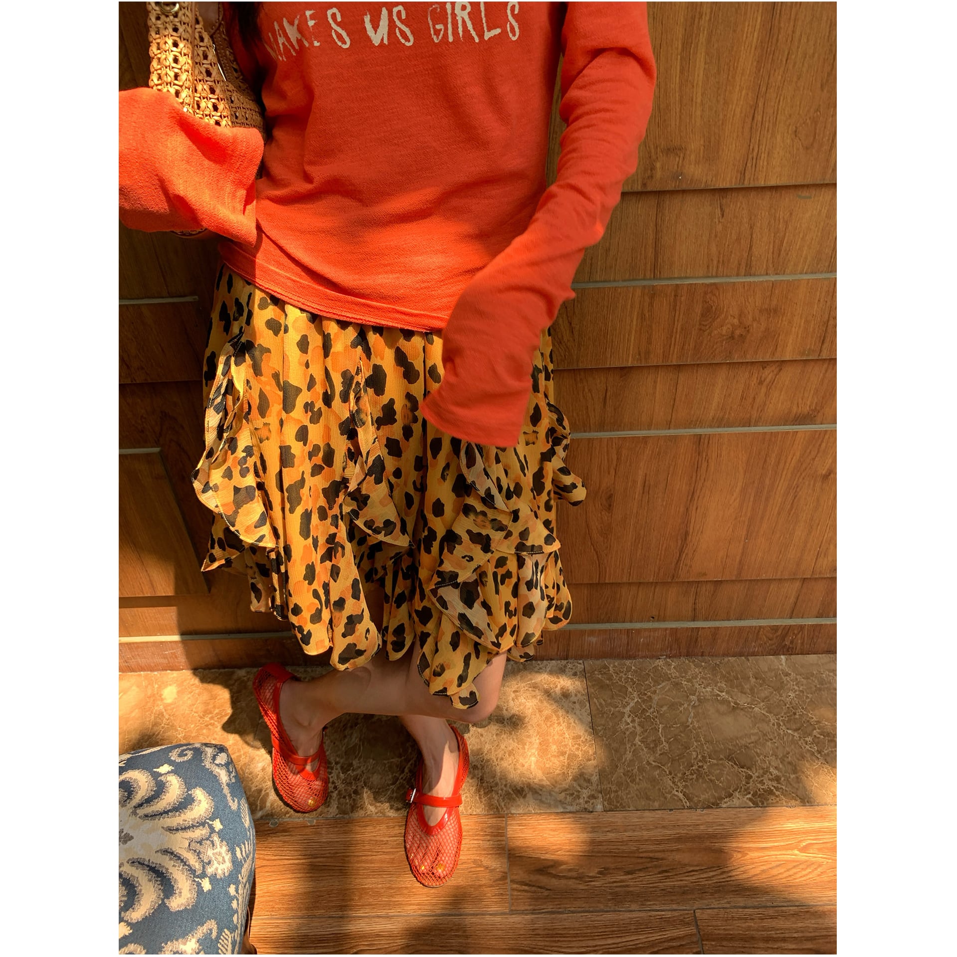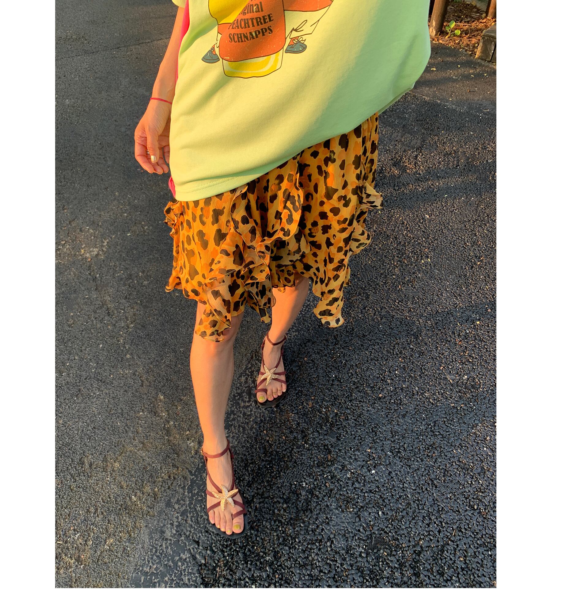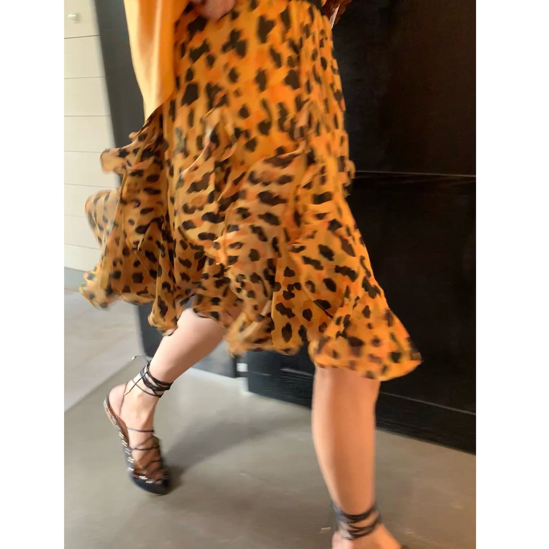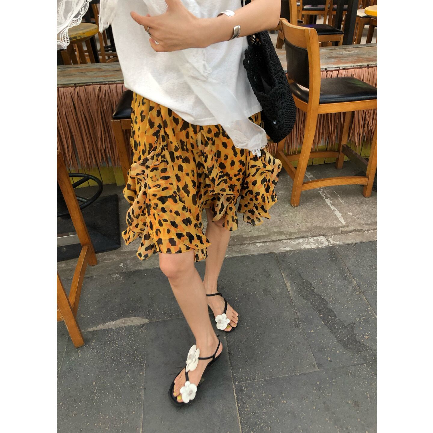 leopard print chiffon asymmetrical skirt<sk1591>