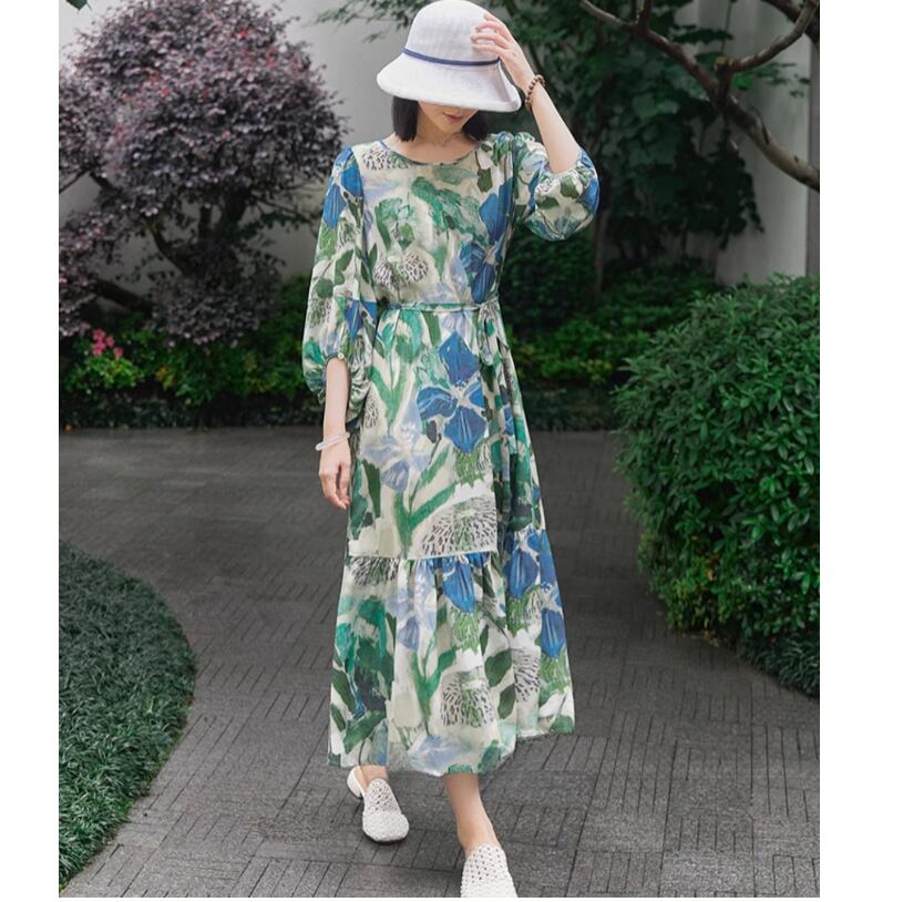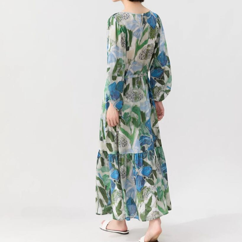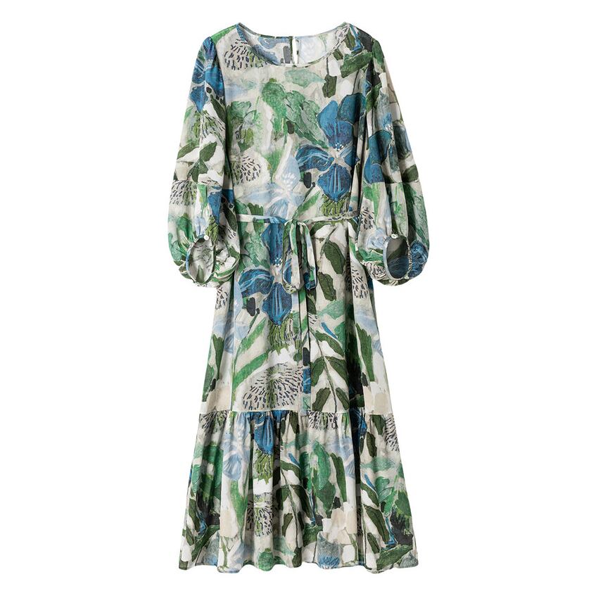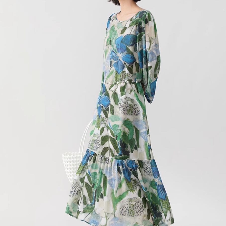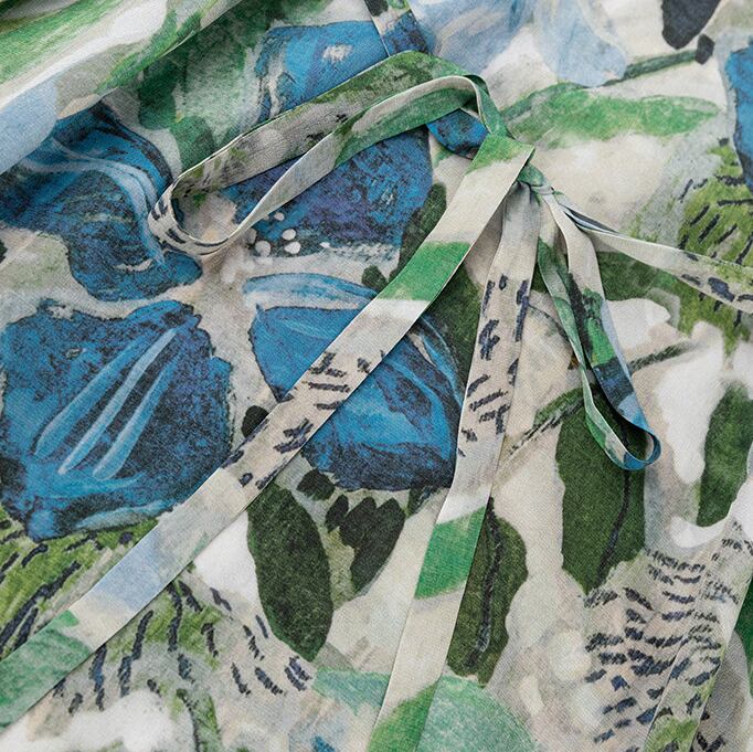 繊細なフラワープリントをシルクに落とし込んだ、ロマンティックな一着。