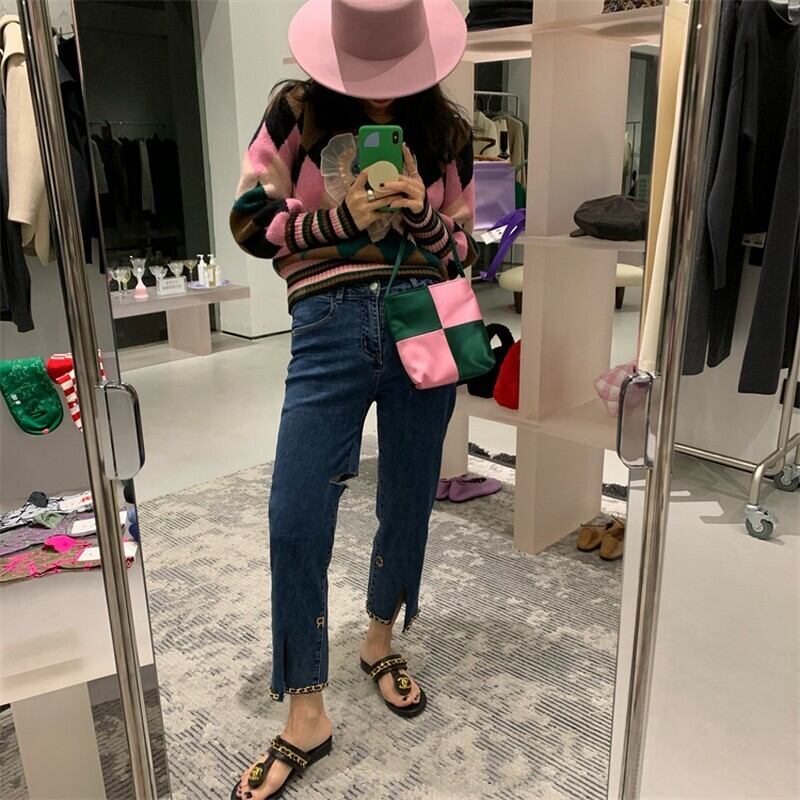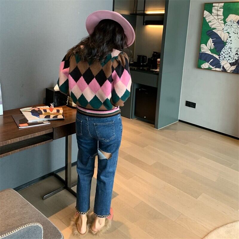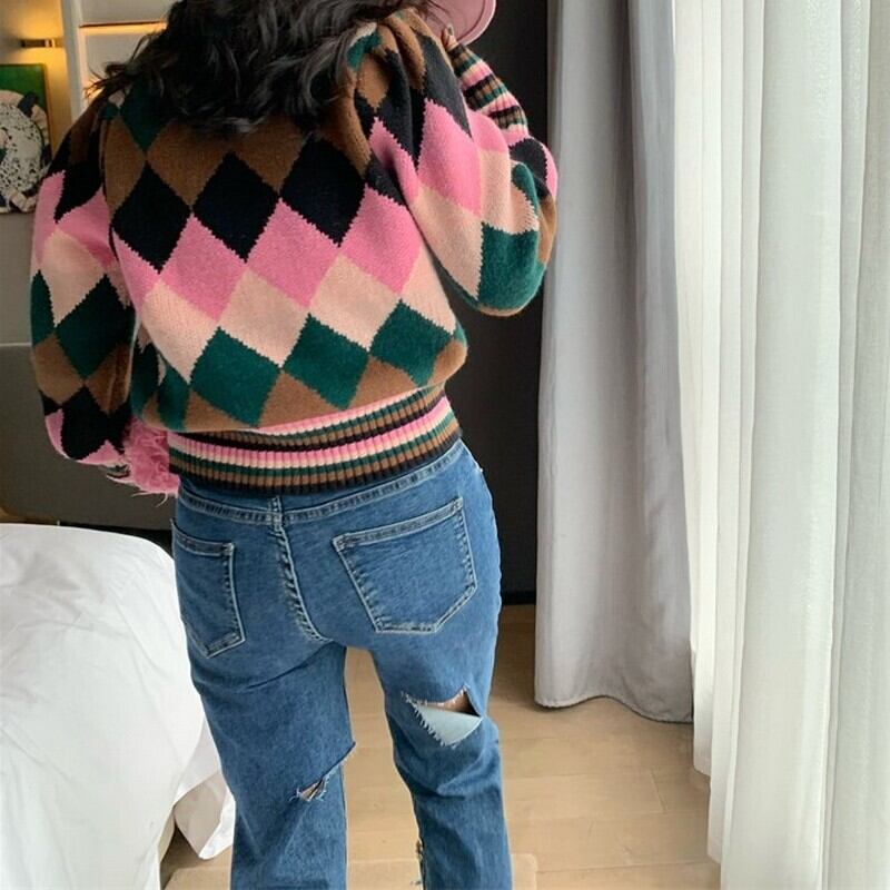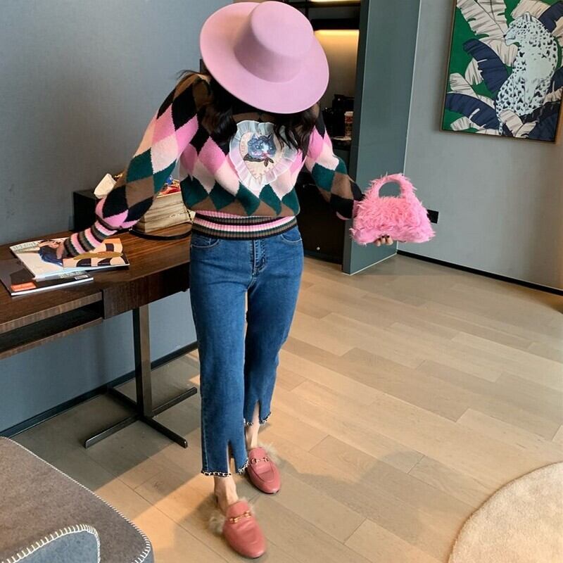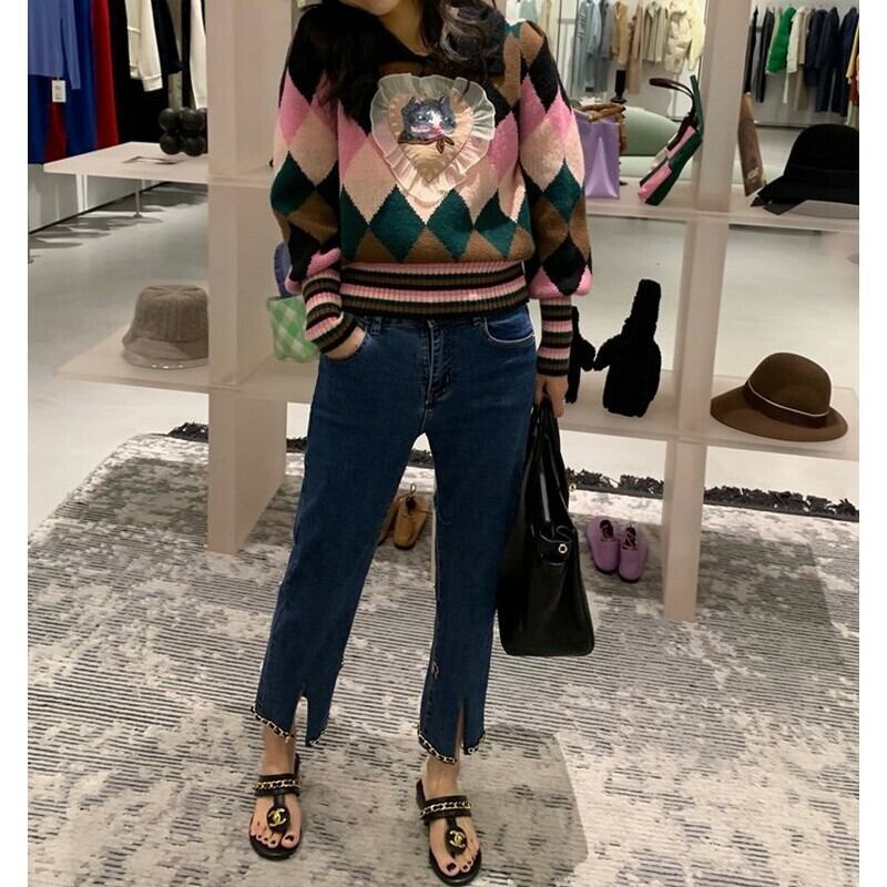 argyle sweet cat knit <t10053>
