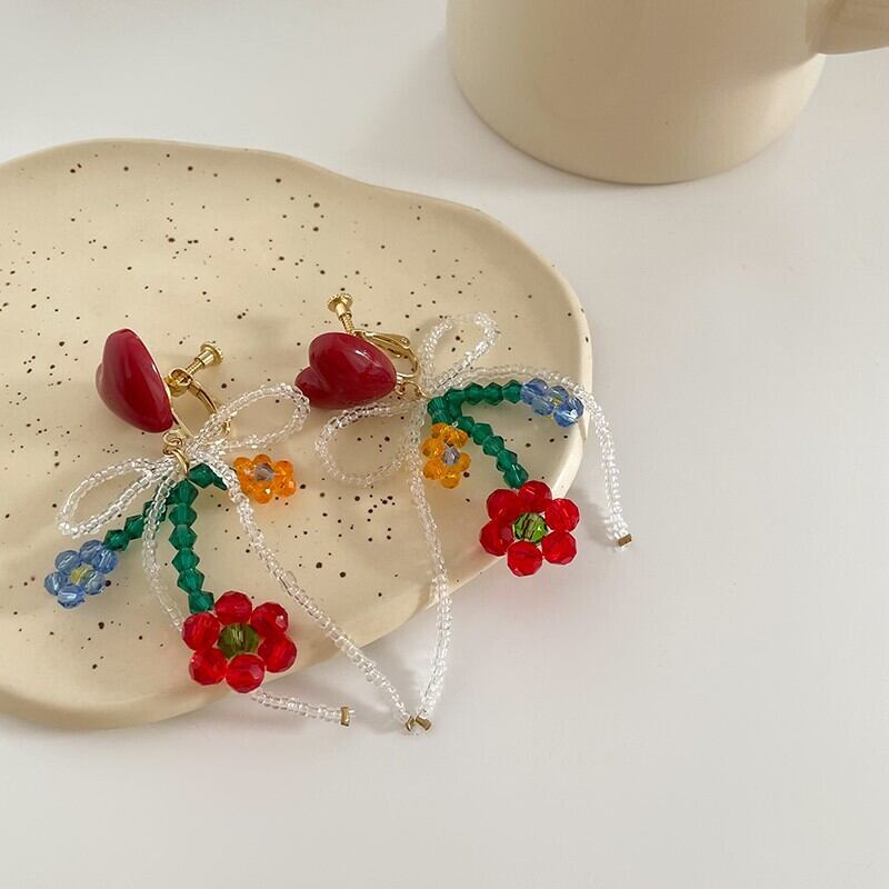 heart&flowers earring <a10092>