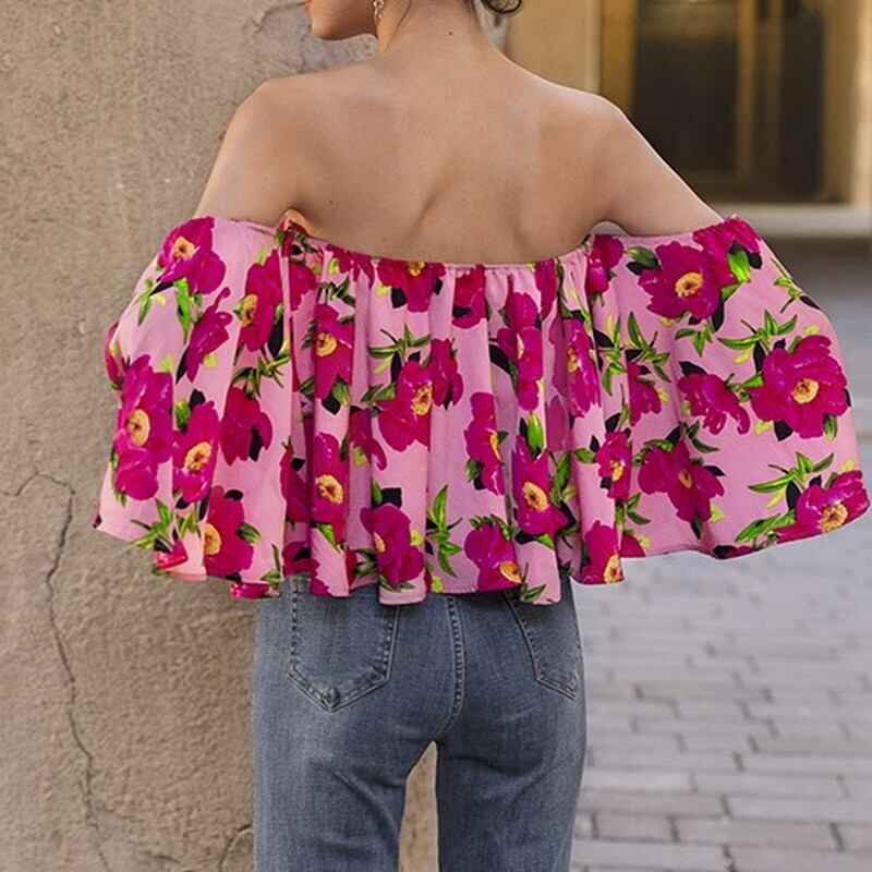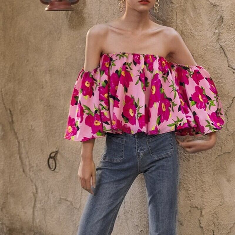 fancy floral off shoulder tops <t10125>