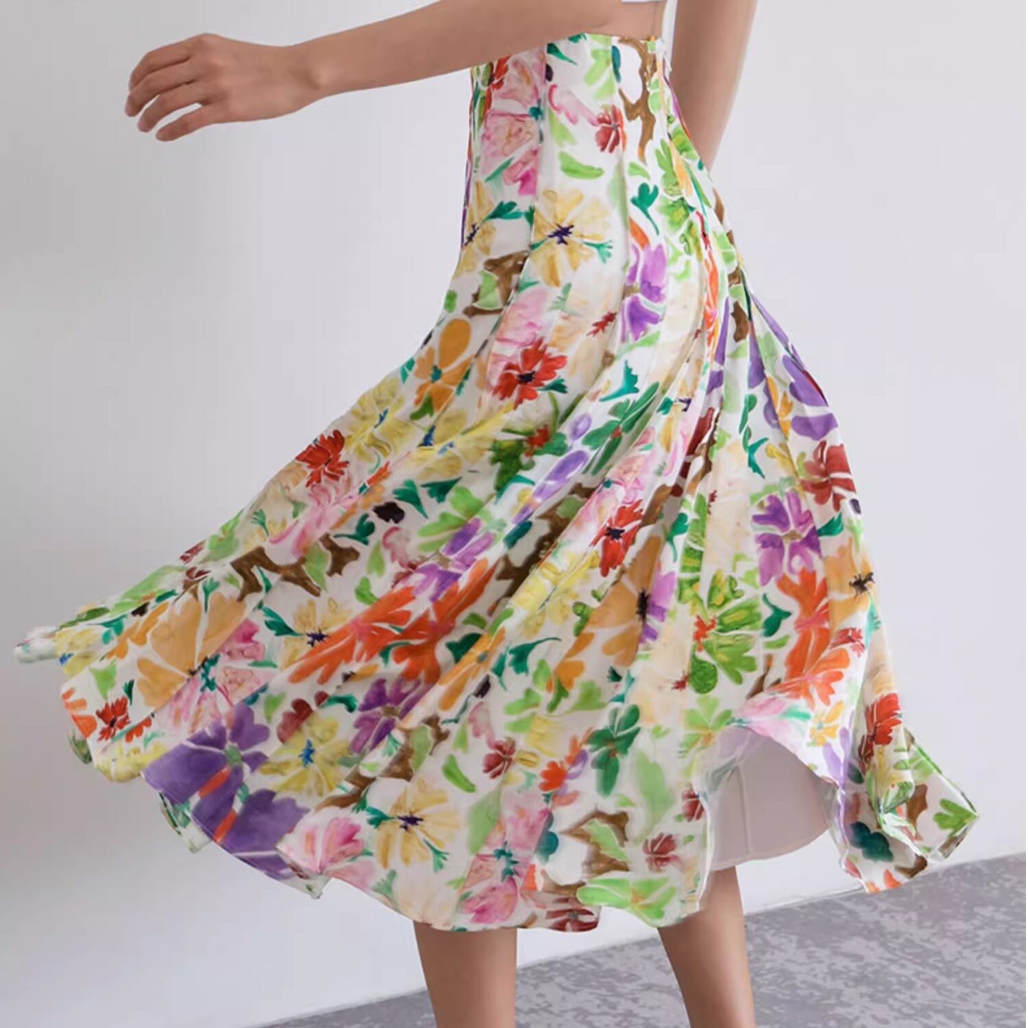 colorful floral A-line skirt <sk100437〉