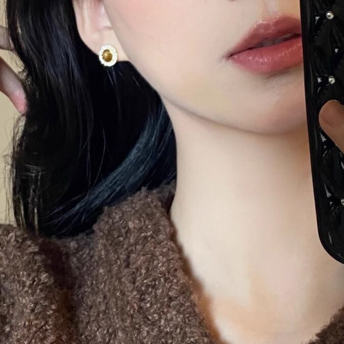 glimmering tiger's eye round pierce、earring<a100453>