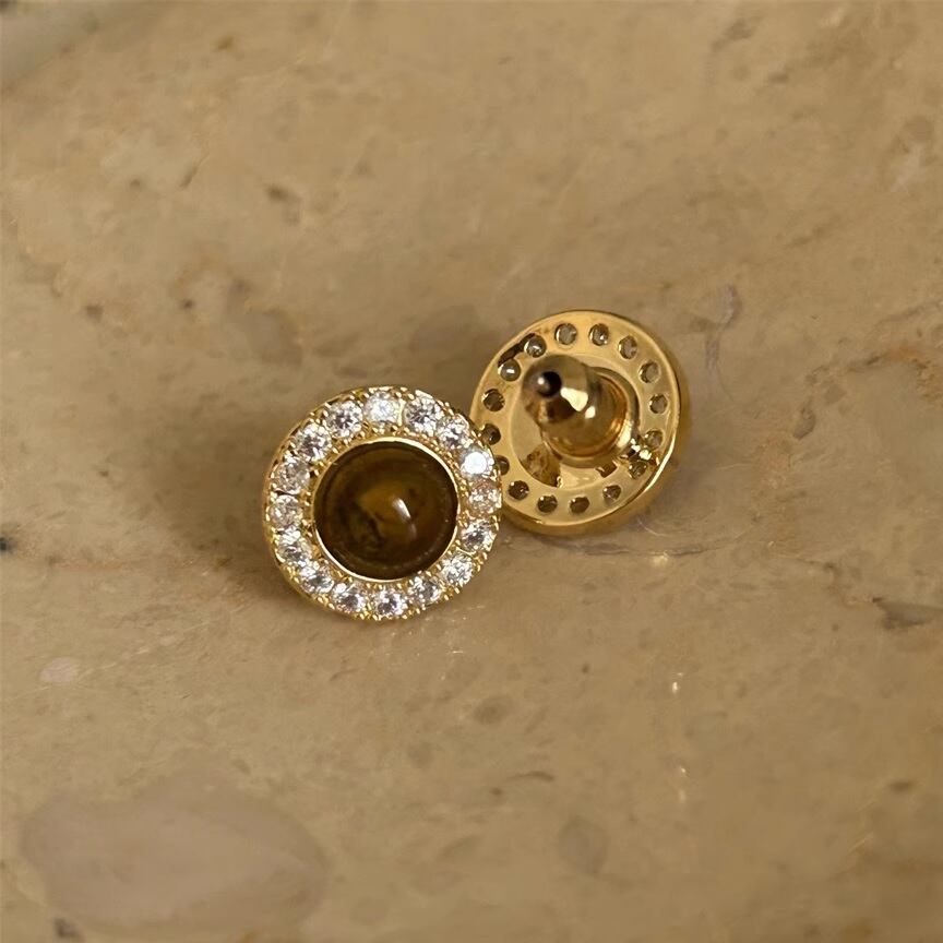 銅、ジルコン、925シルバー針、天然タイガーズアイ