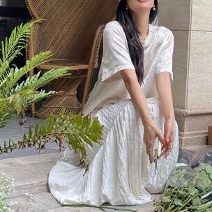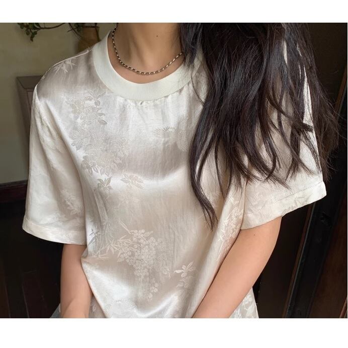 光沢のあるシルキーなジャガードで個性的な印象に。