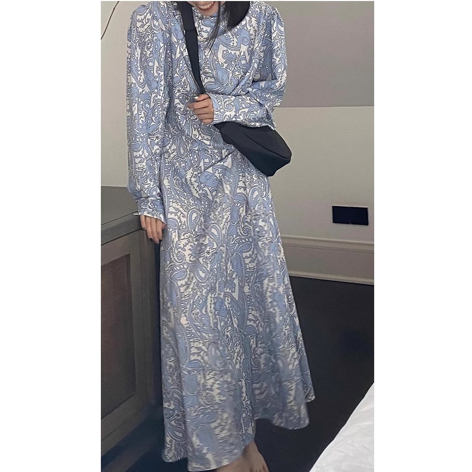 paisley long-sleeve one-piece、ペイズリー柄がおしゃれな印象。