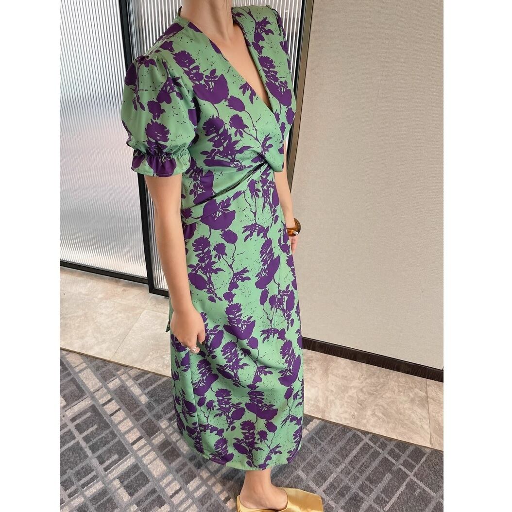 purple&green flower wrap onepiece 〈d101018〉