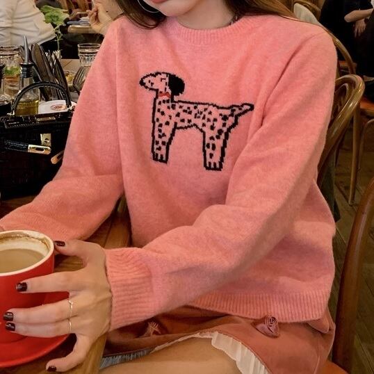 dog embroidery knit top <t101030>