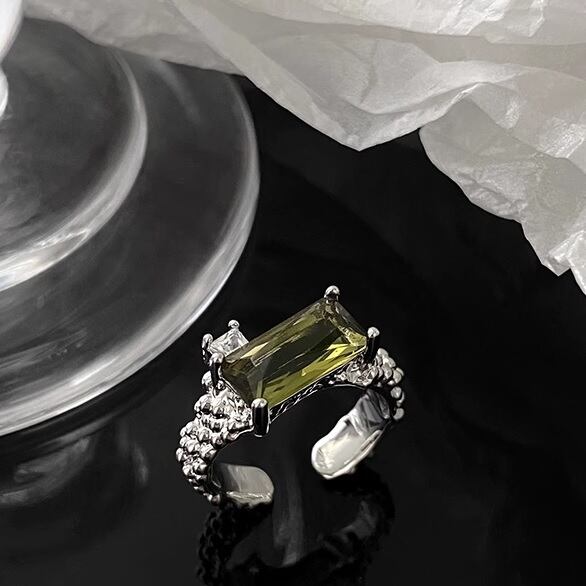 深みのあるグリーンストーンが、シンプルながらも個性を引き立てる一品です。