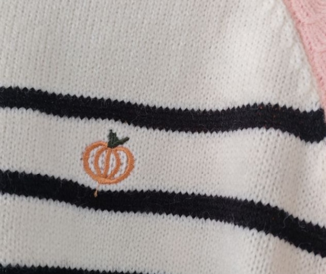 可愛らしい色合いが魅力的なcolor-block striped embroidered crewneck sweater 。