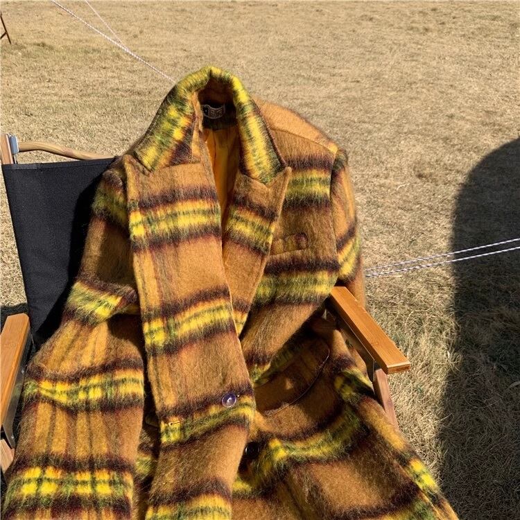 大人の魅力を引き立てるthick plaid wool overcoat。