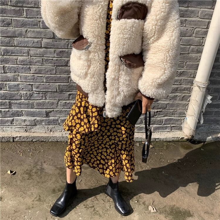明るいイエローのデイジー柄が目を引くロングワンピースです。