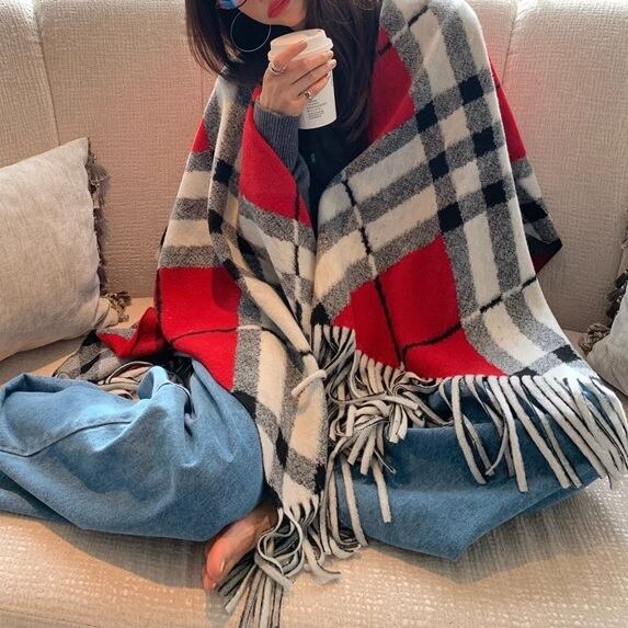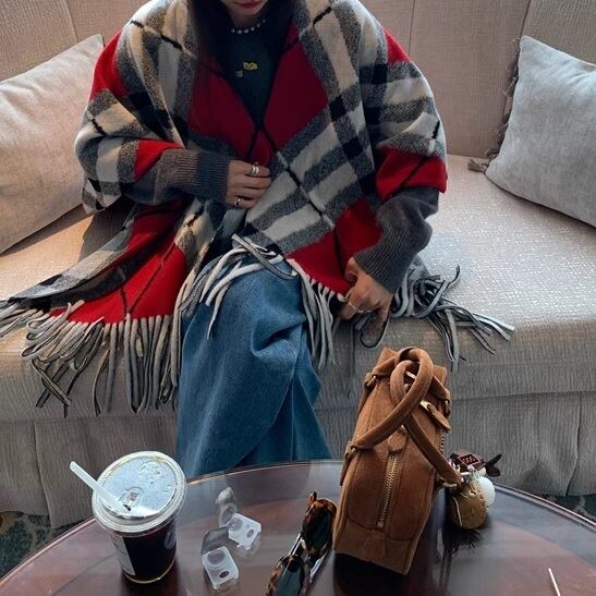 クラシカルなcheckered autumn winter fringe shawl。