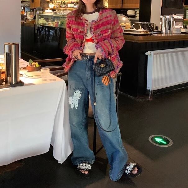 レトロで可愛らしい印象のfringed red striped jacket 。
