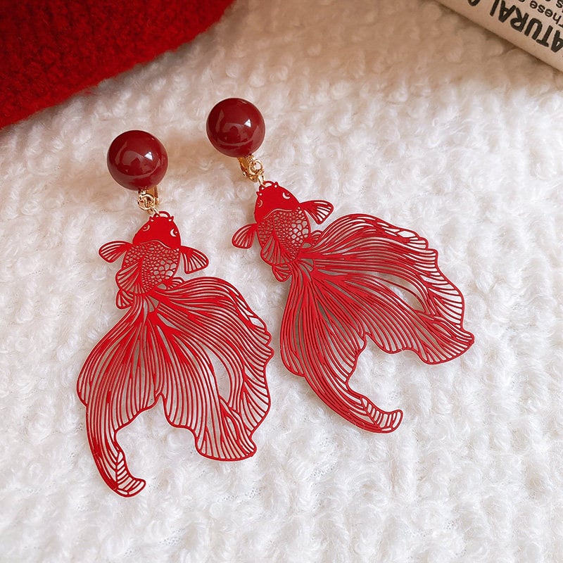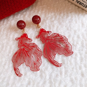 エキゾチックなred gold fish earrings,pierce。