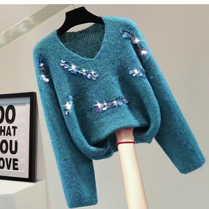 大人の女性にぴったりな、V-neck knit top with jewels。