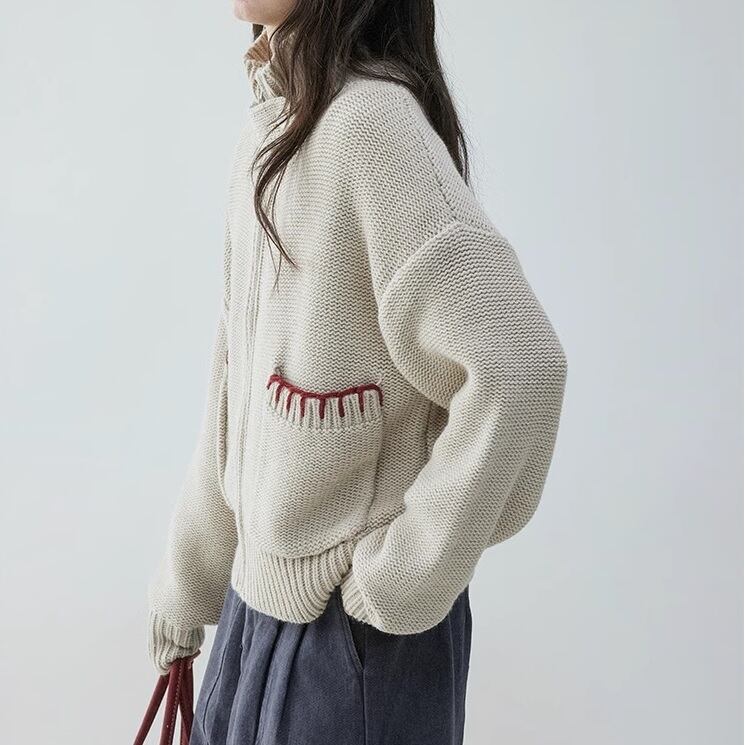 high-neck zip-up knit cardigan〈t10814〉