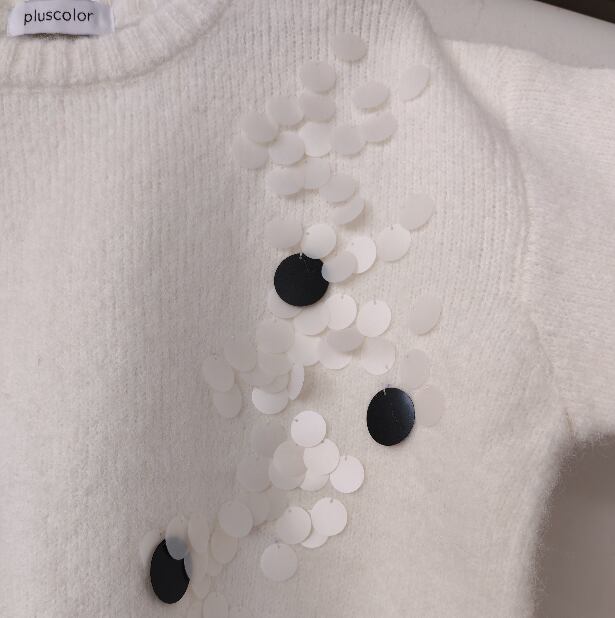 エレガントなround-neck jewel knit top。